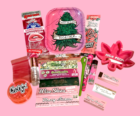 Get ready to elevate your smoking experience with the Weed Be Good Together Rolling Tray Set. This set includes a Smoke Arsenal metal tray, Wise Skies ashtray, Chongz grinder, and more!